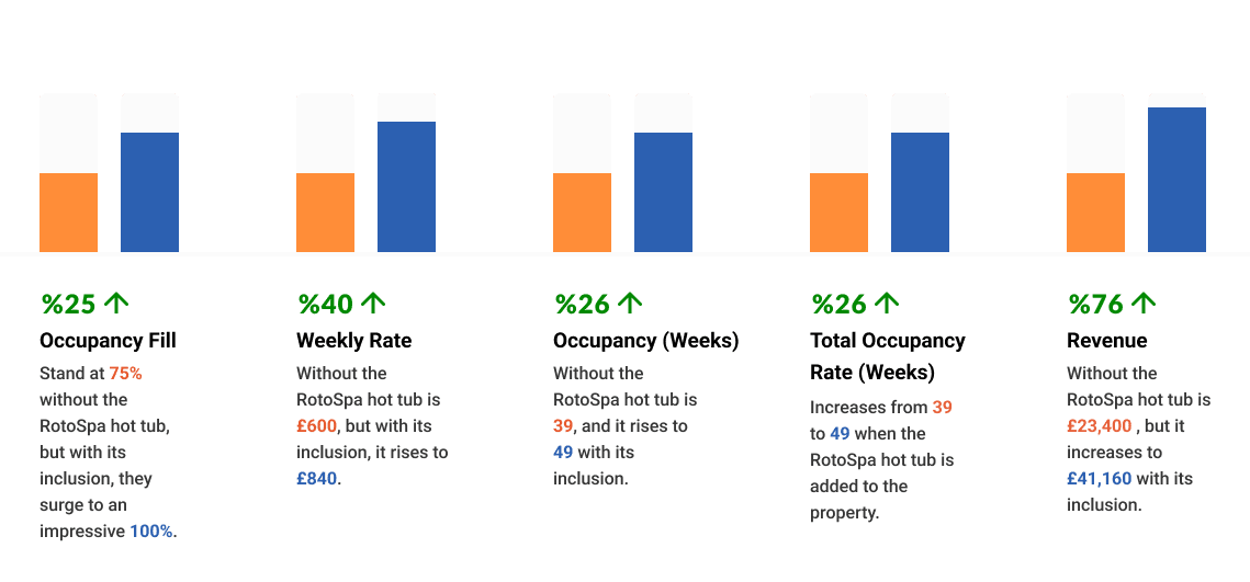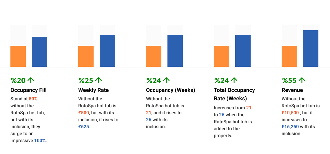 - Hot tubs increase occupancy by up to 25%.